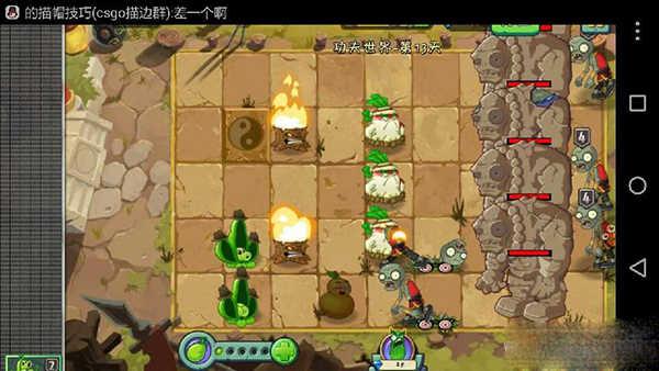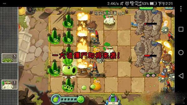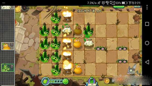 把第一波僵尸打掉之后基本上就稳了,然后就是来什么就种什么了。在第一个巨人要出来时,如果他脚下有一个地刺或者刚好点了一下火葫芦,你会看见它刚解脱时便会死掉。