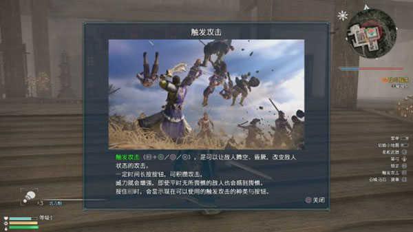 基础攻击、连招和无双:本作□的普通攻击和△的蓄力攻击依然保留,但取消了系列传统的C系统连招模式,取而代之的是触发攻击系统(R1+△/□/×)。触发攻击都可以长按按钮蓄力来破防。