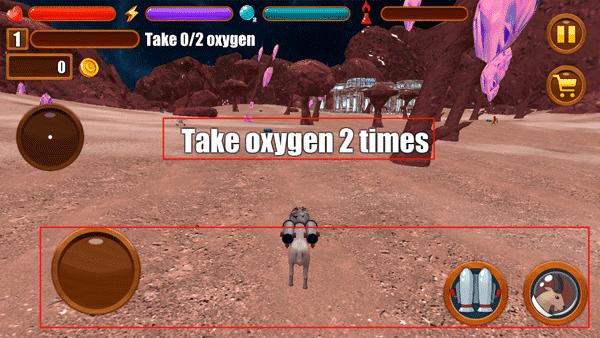 3、进入到游戏后,通关目标是获得两罐氧气,左边的移动方向键,右边的是飞行和攻击键。