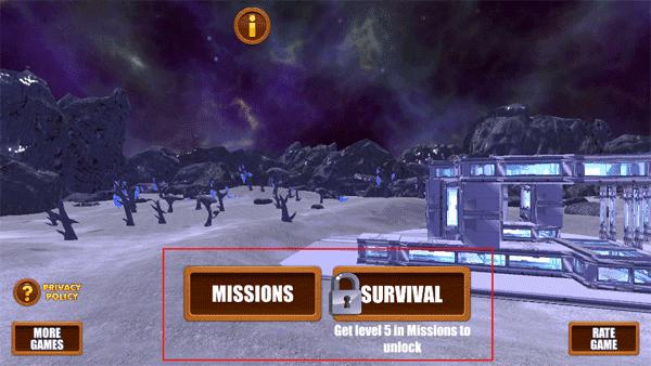 1、打开游戏,会发现有两种模式:任务模式、生存模式,生存模式需要等你通过第五道关卡才能解锁;