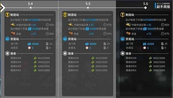 制造站:制作赤金、作战记录(干员升级经验道具)、源石碎片(换取合成玉材料)、某某双芯片。
