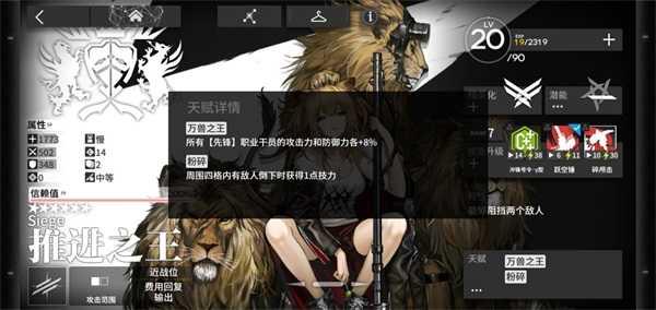四星干员,攻击力高,为击杀回复部署费用,攻击特化型先锋,技能天赋全部都加在攻击上,阻挡1,面对单个敌人时,有较大杀伤力。获取难度较低,在公开招募、干员寻访中都可获得。