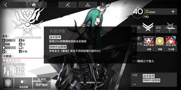 四星干员,虽然攻击不算高,但是作为一名单体医疗,还是能发挥到她的作用。部署加医疗干员攻击及防御力,持续15s,技能为群体医疗,持续7s,必要时可以当作群奶使用。获取难度低,在信用交易所即可获得,容易满潜。