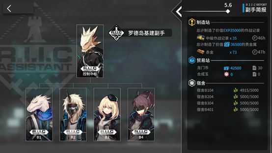 控制中枢:进驻可提供一些基建buff,效果取最高。基建副手和楼层副手会获得根据宿舍氛围一定规律的相应信赖。也可查看每日的基建收益。