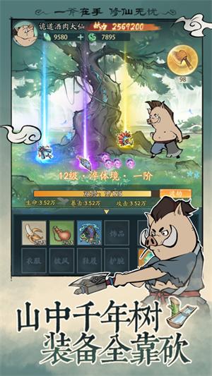 寻道大千破解版无限资源版最新版本是一款在广告上都可以看到的砍树修仙游戏,游戏中玩家将成为一种刚入仙境的小妖,你将体验到从砍树开始慢慢变强的修仙道路,游戏内所有装备、修为都可以靠挂机砍树获得,同时游戏也有着丰富的战斗玩法,轻松渡劫,逍遥仙界。