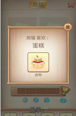 3、可以看到提示格中:放入场景内蛋糕,利用蛋糕+50颗钻石就能使熊猫出现了。