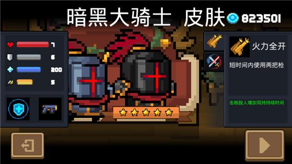2、它们各自有着各自的特点,初始角色“骑士”,被认为是游戏中爆发能力最强的角色。对于新手来说,走位是需要一定时间学习的,简单粗暴的“骑士”反而是最适合新手入门的角色。所以,新手小伙伴不妨先将“骑士”升满,待了解了游戏后,再慢慢考虑其它角色的入手。