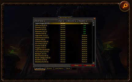 魔兽世界有着数以百万计的活跃玩家。如果所有玩家都同时处于同一个游戏世界,将会相当拥挤(而且运行游戏的服务器很可能会成立公会和罢工)。为了保证玩家获得稳定、流畅、连贯的游戏体验,魔兽世界将玩家分配到了不同的服务器中。每个服务器都是游戏世界完全相同的复制,一般来说,只有同一服务器上的玩家才能一起游戏和互动。我们可以把每个服务器想象成平行的宇宙或者空间的镜像,每一个都是成千上万个玩家角色的家园。