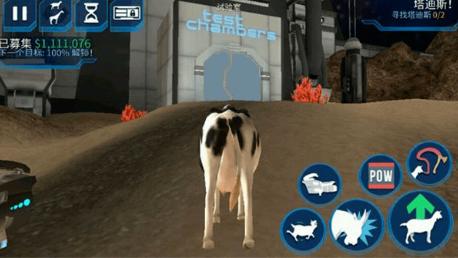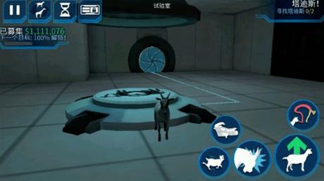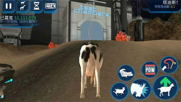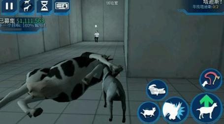 1、游戏里银河山羊在试验室中解锁的,玩家来到试验室后会接到任务,进入试验室,这里我们需要进行四个实验,首先踩下中间的蓝色按钮,掉落下一头牛。