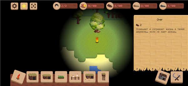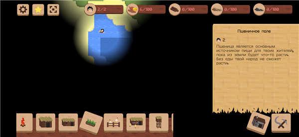 刚开始加载进去后,点那个右下角的小房子,会弹开一系列的东西,点最前面那个火把,按着不动把它放在土地上,就会出现两个人,然后就是后面种农田。