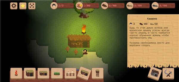 3、有充足的资源后可以建造小木屋,从小到大建立各种房子。