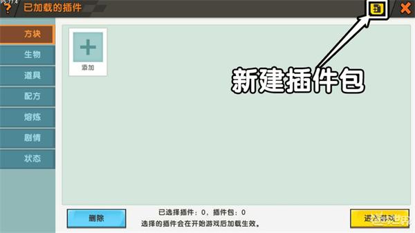 首先让我们打开游戏!创建一张地图,点击右上角插件按钮: