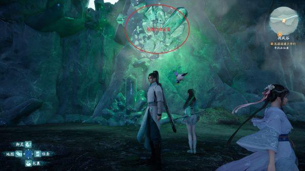 3、实际操作是,找到一块冰晶石就够了,拿起冰晶石然后走到冰壁边上往左边靠(不用担心掉下去),然后把准心对准右边墙壁上的冰晶石,点击确定后修吾自己会发动攻击,冰壁就破了。