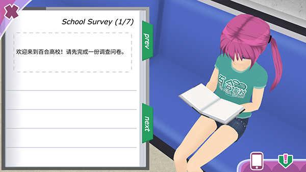 故事模式下总共只有7天,然而前面5天的时间我都因为没搞清楚玩法而在打酱油,跟妹子的对话内容翻来覆去就那么几句,不知道怎么进行勾搭,唯一能做的只是上学,打工跟闲逛。上学玩家每天都可以上课,为什么是可以,因为没有限制,逃课也没有任何惩罚。但如果不学习,很多能力点得不到提升,达不到妹子的基本要求,自然泡不了妹子。