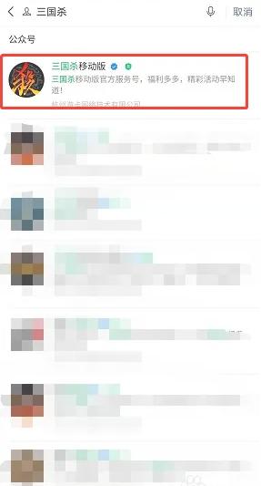 通过搜索功能找到三国杀官方公众号。