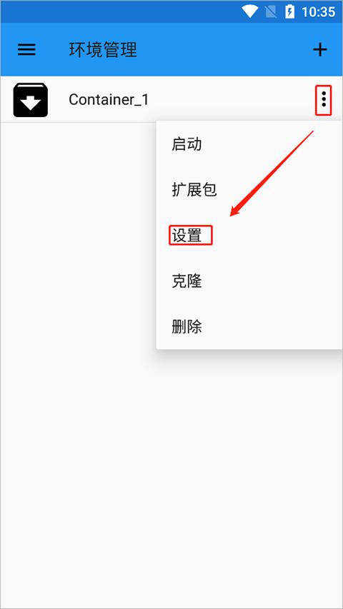 3、选择文件”Container_1"右边的三个点符号,点击“设置”;