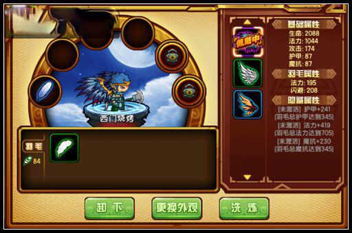 进入洗练属性后,可以选择羽毛,然后消耗羽枝和灵魂洗练羽毛的属性。
