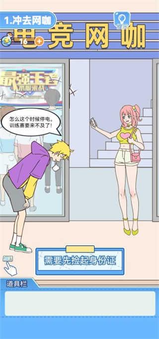 1、首先我们进入我的室友是主播游戏中,第一个关卡就是冲进网吧,由于主播家里停电,所以必须在网吧进行直播;