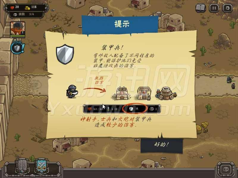 穿着铠甲的敌人与士兵会受到较少的物理伤害