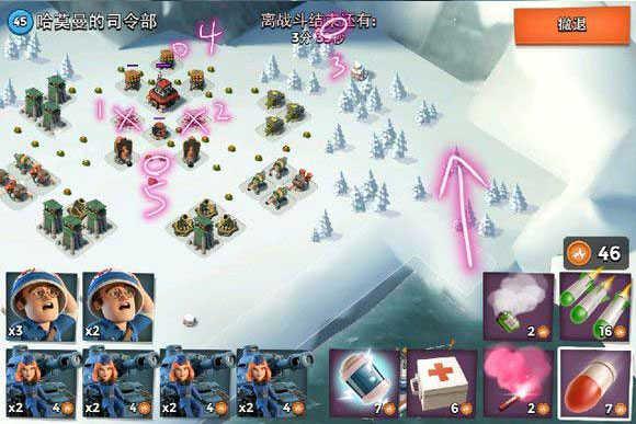 三烟雾登陆:火箭在本后,其实对部队的登陆并没有影响;这里用烟雾的原因,是等烟雾消失后,部队已经瞄准,可以快速地拆掉岸前的狙击塔。