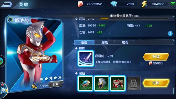 第一:装备和技能:这些需要金币来支撑,前期的金币相对还是比较缺的,所以不可能所有奥特曼全部一起培养、