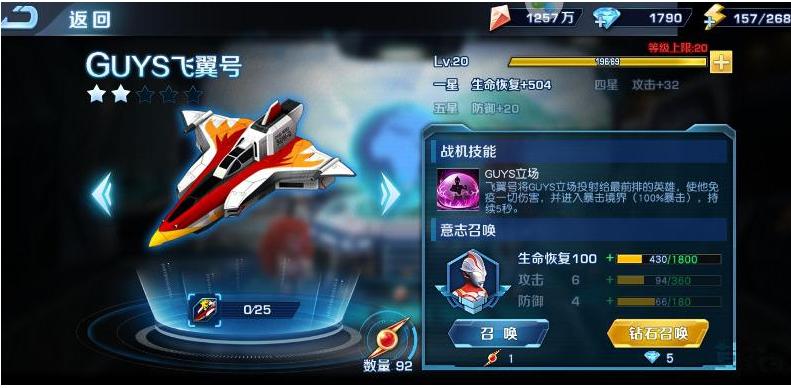 飞行战机主要是用来帮助人物战斗,以及在战机2颗星20级之后可以协同专属奥特英雄,来增加相对应的奥特英雄的三围属性。