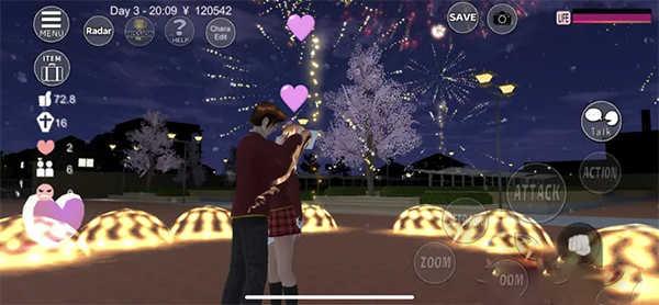 1、玩家先选择一名有好感的男生在一起谈恋爱,现实情侣能做的事情,游戏中情侣也可以做