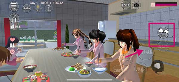 可以跟朋友在家恰饭(打开图中这个对话键,在衣服图标旁边那个设置那里点开,在最底端找到item,这时候列表上面就会有可设置在各个地方的物品,选桌子就可以选菜给自己和朋友了)因为Sakura更新到中文版,很多东西都跟以前的不太一样,但操作大致上是一样的,只是新版的灵敏度好像更高了。