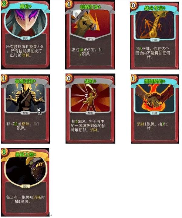 重刃:力量战中最强的单体攻击牌,拥有5倍力量加成,可以轻松打出100+伤害。