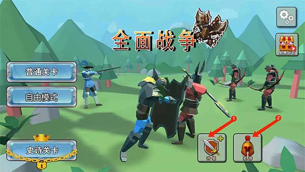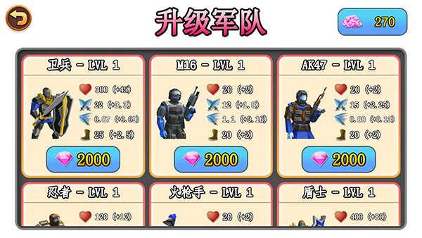 9、返回游戏主界面,选择【升级】选项,包括弩手、弓箭手、斧头男、忍者、火枪手等所有的兵种,