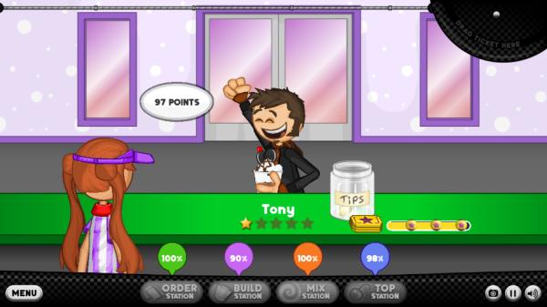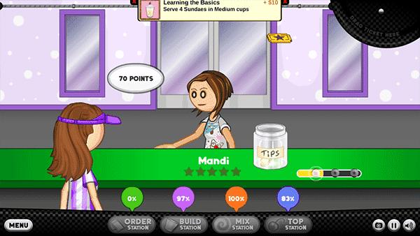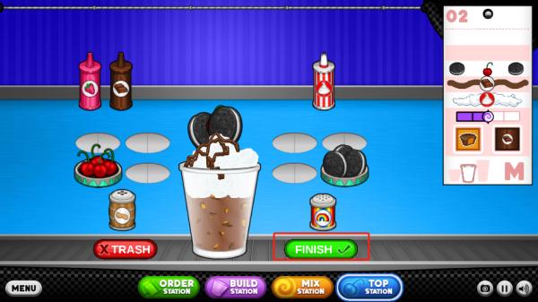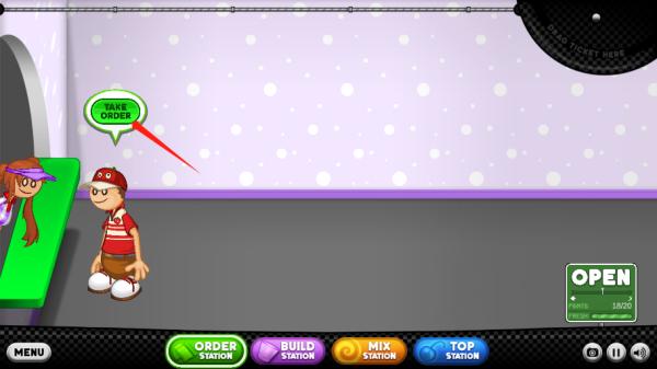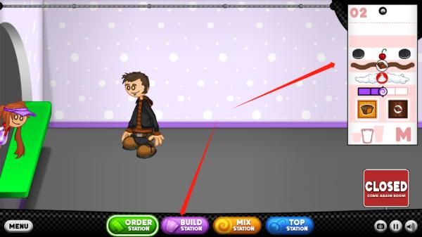 5、你会把每位顾客的订单记在订购单。你需要一杯冰淇淋和冷冻Sundae的原料。前往制作台开始制作…