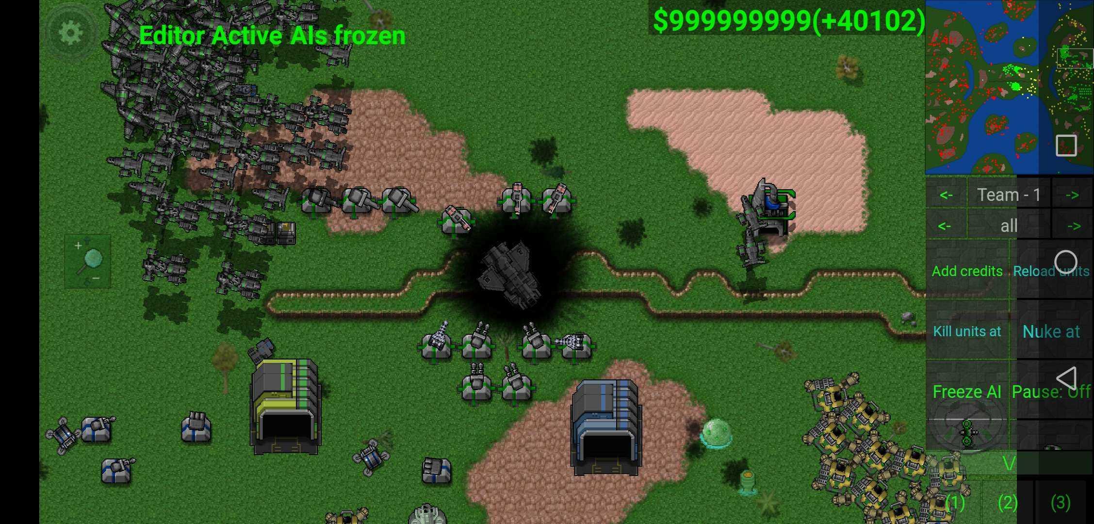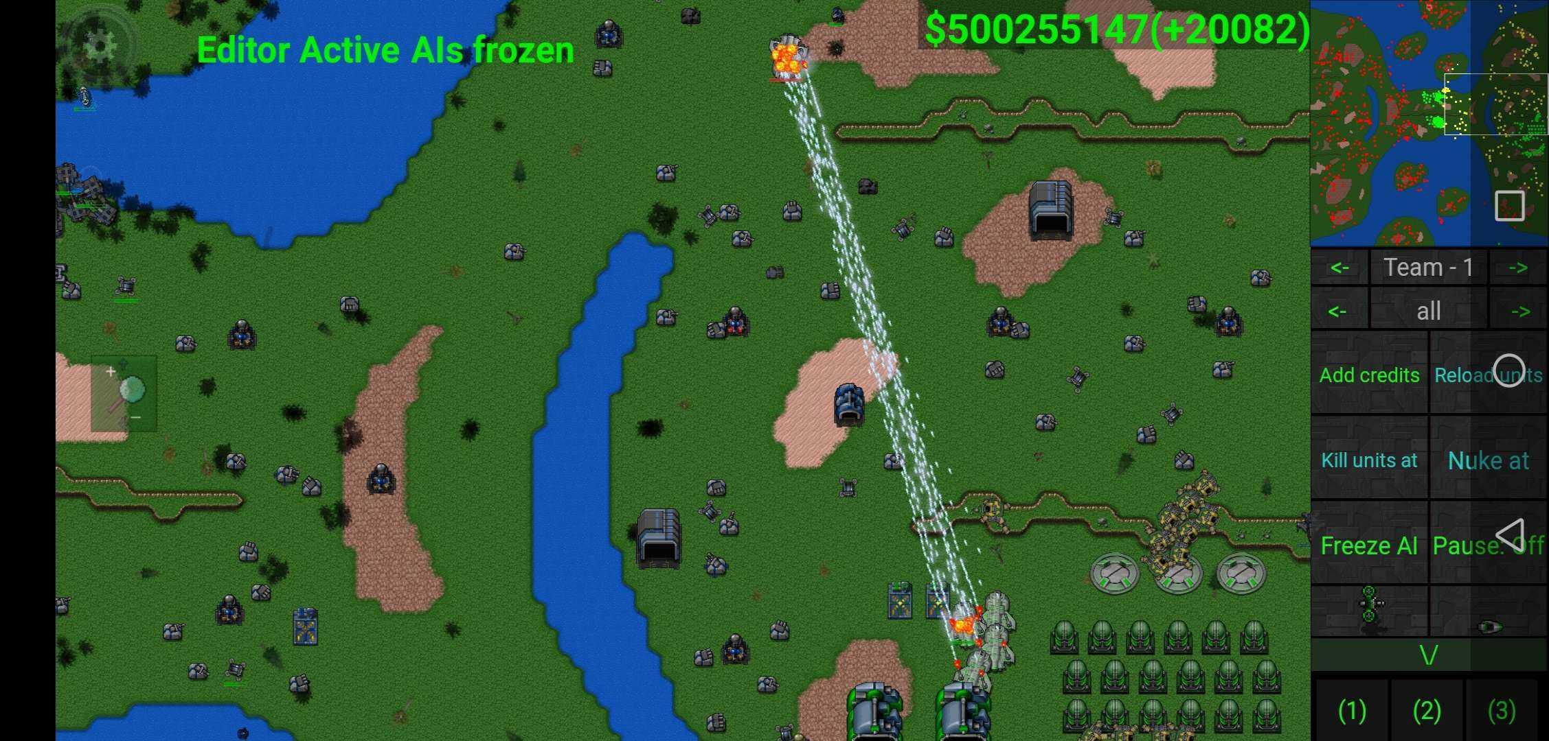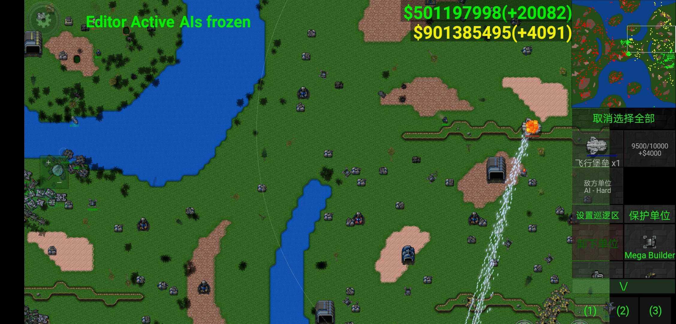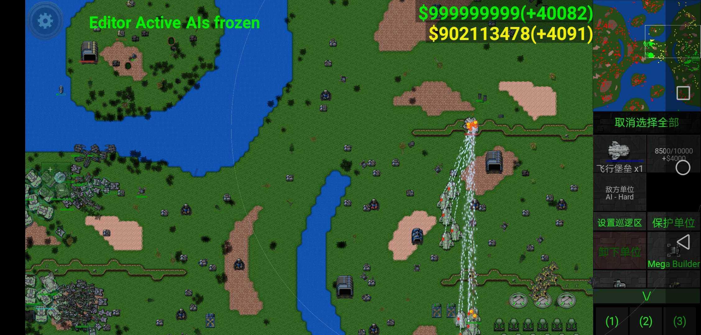 多人游戏,进入游戏后,还是造几座炮塔,保护中间的位置。再造几辆坦克,保护后面的位置,如果钱多的话就多造实验坦克和建造者,如果对手造核弹快要发射时,别造拦截核弹的,迅速将建造者撤离至较远的地方,失去了基地,没事的,有建造者就可以造一切。然后重建基地,反击对手。