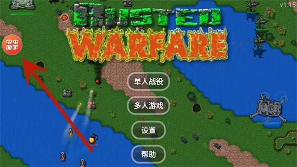1、下载安装好铁锈战争mod大全整合包,打开游戏,在主界面左上角点击虫虫助手的圆形浮窗。