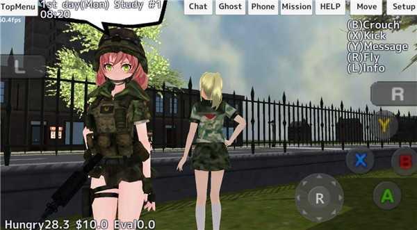 玩法:你是爱跷课的坏学生,一次心血来潮去学校上课,想不到缺课太多,校长广播要把你抓住并惩罚,3-4名老师开始抓你,你只能跑,只能在特定地方瞬移且不能飞行(短时间飞行可以,视为跳跃),而且还有特定日常的事要做,必须撑过一天才能成功。你只能到自家,视听教室,花园,游泳池,图书馆和女仆咖啡厅这几个地方才能瞬移,不能瞬移到山上或海上,可以投降,到花园拿武器将老师全杀掉即可投降,可以用设定或其他暂停游戏查看任务。