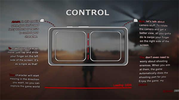 等游戏加载一会就可以进入地图,本游戏没有明确的方向键滑动屏幕左边滑动屏幕右边控制视角方向。