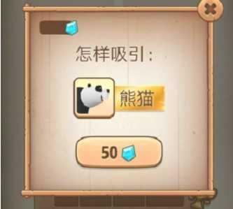 3、可以看到提示格中:放入场景内蛋糕,利用蛋糕+50颗钻石就能使熊猫出现了。