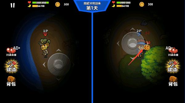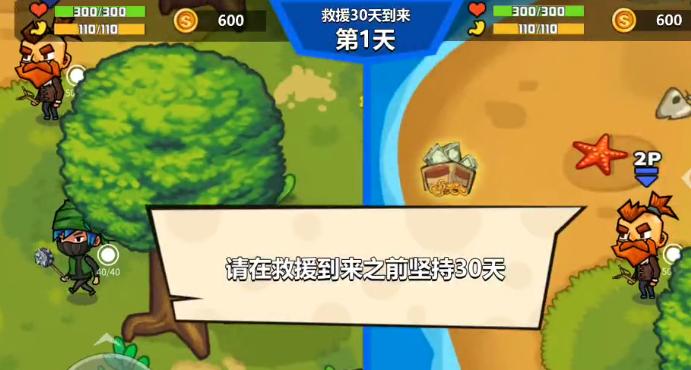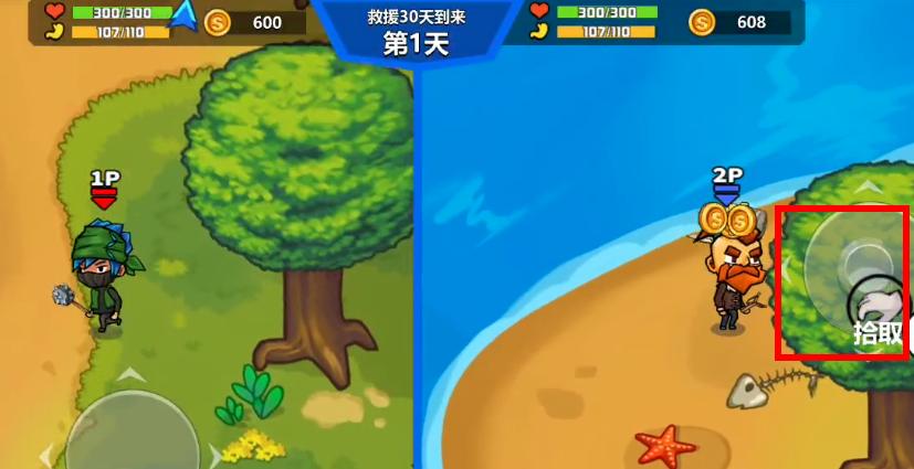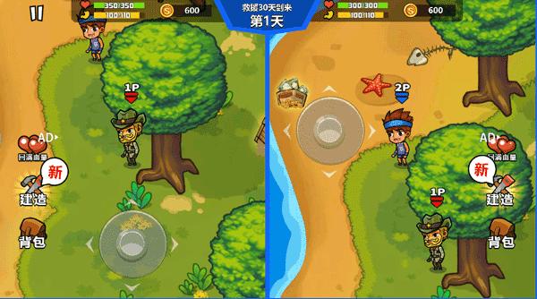 2、流落海岛之上,双人分别操控角色不断移动走位
