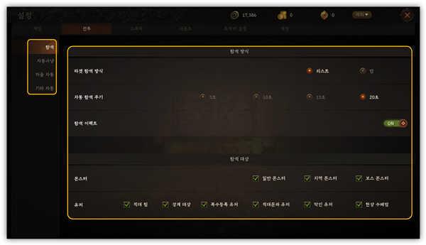 5、当您点击游戏画面右侧的[自动按钮]时,您可以选择并激活自动战斗/采集/全部,您可以在[菜单] > [设置] > [战斗]中设置详细信息。