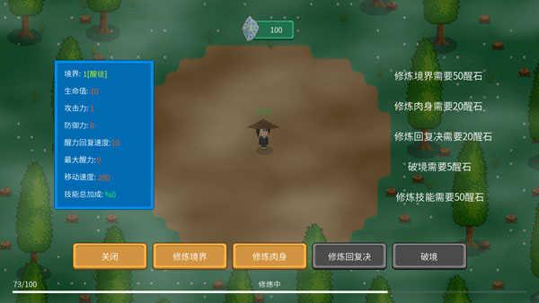 4、点击修炼,你可以在这里通过消耗觉醒石来提升自己的修为境界,等级越高,血量、攻击、防御也就越高;