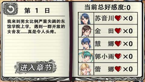 2、每一天结束时,如果五位女主角好感度的总和达到了要求,就可以进入下一天。