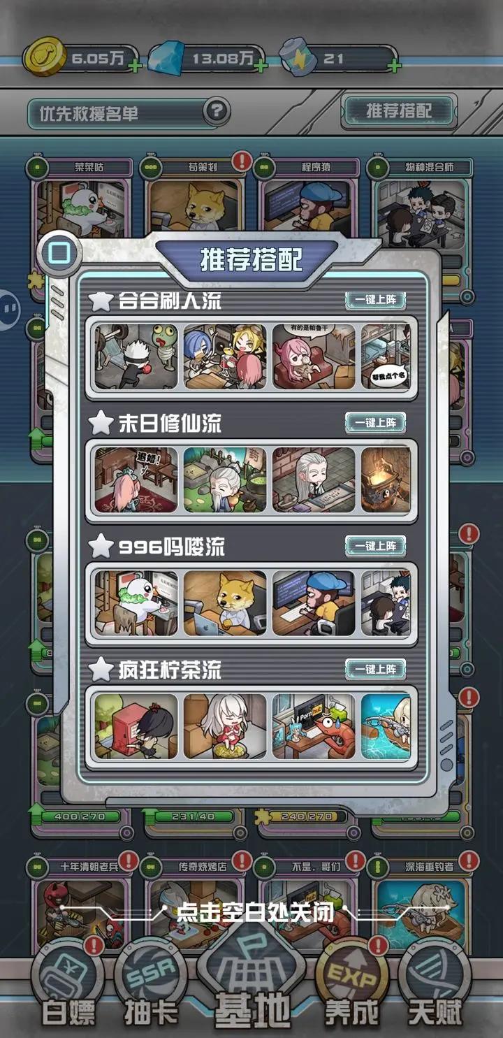 首先是【福瑞办公室】流派,它由【物种混合师、苟策划、菜菜咕、程序猿】组成。这个阵容堪称全能,能守能攻,稳定性与均衡性兼备。其核心玩法就是秉持人多力量大的理念,通过局内大量的额外消耗来推动生产、消耗、再生产的循环,从而轻松过关。玩这个流派,你只需放心选择,然后尽情享受无脑放松的游戏乐趣就好啦!