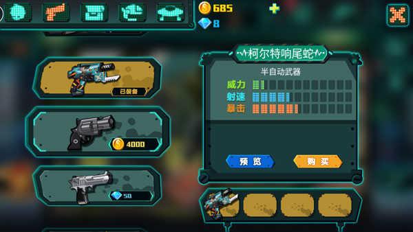 待购买新武器后,正好有个无尽模式,这样可以快速刷些金币,土豪在这个时候建议购买少量金币来升级新买的枪支,这样在前期无尽模式能刷取更多的金币,让游戏进度和爽快感快速增加。