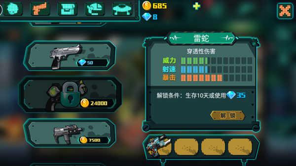 前期很简单,按照任务指引来,他让你升级就升级不要把钱去买其他东西,可以把初级手枪升到3级,主要让玩家熟悉游戏操作和内容,这样通关前几关到第四关我们就有第一笔钱购买武器。