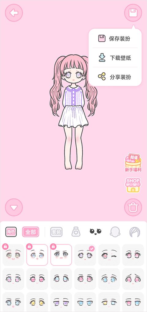 5、为您的角色打造的十分具有个性化,点击右上角还可以进行保存、下载当壁纸、分享等等;