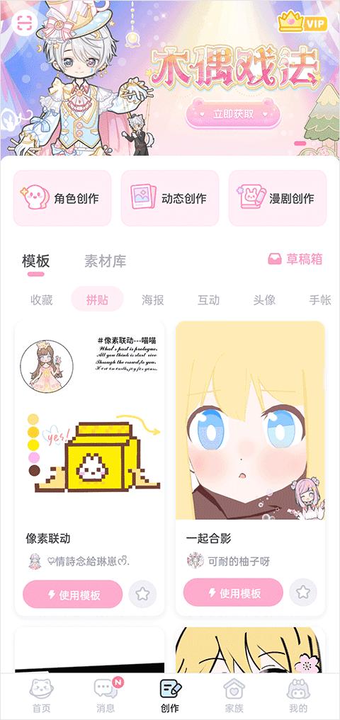 1、首先打开装扮少女官方正版,在创作模块这里可以进行创作;