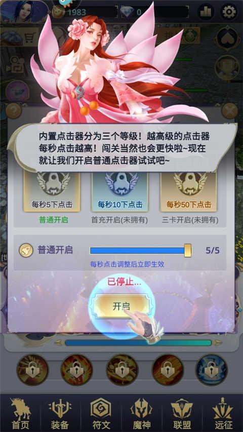 8、内置点击器分为三个等级!越高级的点击器每秒点击越高!闯关当然也会更快啦~现在就让我们开启普通点击器试试吧~
