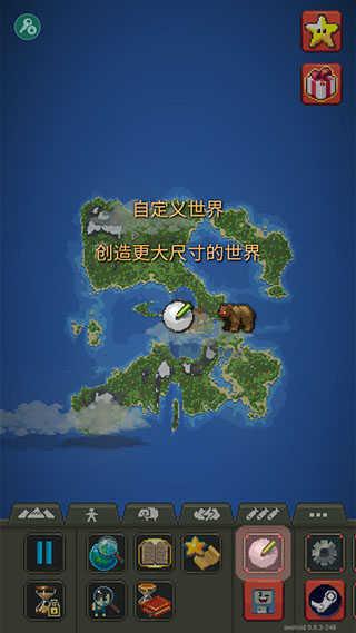 4、自然及灾害:玩家可操控的自然方面有播撒森林、沼泽、冰原等地貌的能力,创造不同的地貌,播撒丰富的资源矿物也会让生物的发展提供有利条件。灾害的可玩性也很高,操控大自然的力量对环境造成影响,除开常见的温度变化,还有影响剧烈的地震、闪电、飓风、火灾等大型灾害,它们都会对地貌造成毁灭性影响,对于生物文明自然是一场巨大的天灾。
