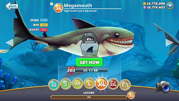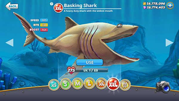 ps:玩家刚进入游戏发现鲨鱼最高只能解锁到xxl级,其实玩家最高可以解锁到!!级的鲨鱼,就是巨齿鲨