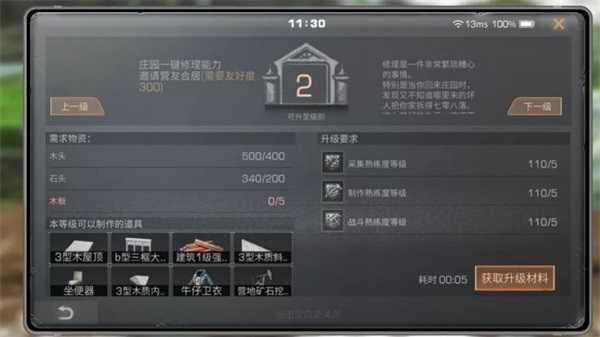 庄园是末世最坚实的庇护所,庄园等级昭示着幸存者们的实力。首先升级庄园需要有足够的物资,以及相应的熟练度等级要求,升级所需物资可以通过采集和制作获取,亦可通过快乐101的交易摊位购买噢。