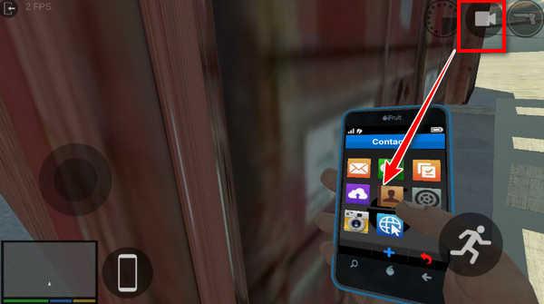 2、建议切换到第一人称更方便看手机菜单,我们点击这里手机中的通讯录图标